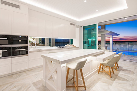 Boasting 1,375m² of light-filled, living area and designed to take full advantage of the magnificent views of the Broadwater, hinterland and the park, this Hamptons inspired mansion offers the best living Queensland has to offer. Located on what’s considered one of the best blocks on the Sovereign Islands, this newly developed, modern and lavish home was developed by G&T Developments.